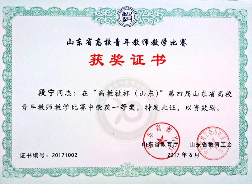 段宁获省高校青年教师教学比...
