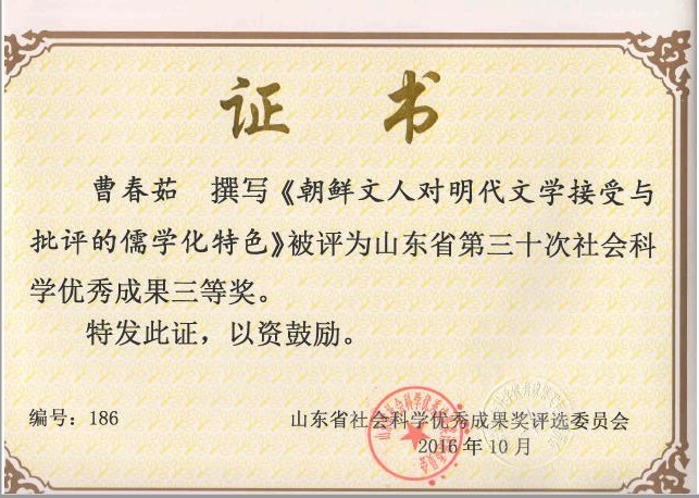 曹春茹:著作获2016年第三十...