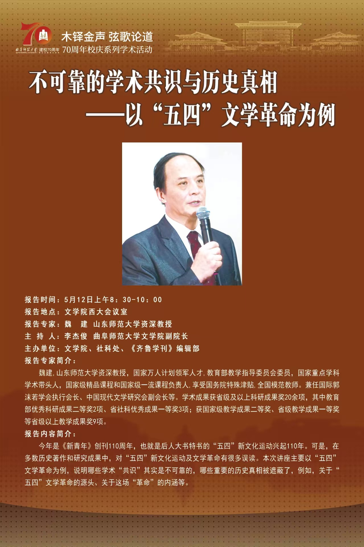 70周年校庆系列学术报告|不可靠的学术共识与历史真相——以“五四”文学革命为例