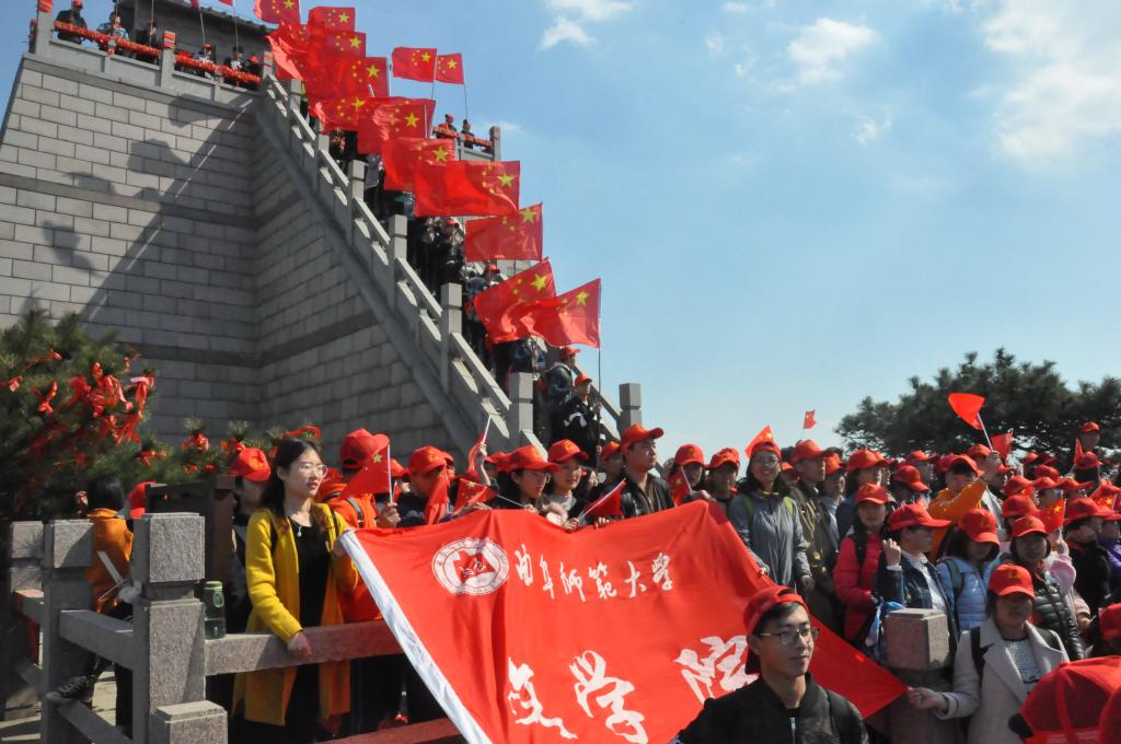 3月31日,迎着温暖和煦的春风,临沂市蒙山风景区玉皇殿外响起嘹亮的歌声。bet365 两个校区共近千名师生正在此地举行庆祝新中国成立70周年红色教育活动。bet365 团委副书记杨芳带领51名学生代表参加此次活动,用歌声向革命先烈致敬。
