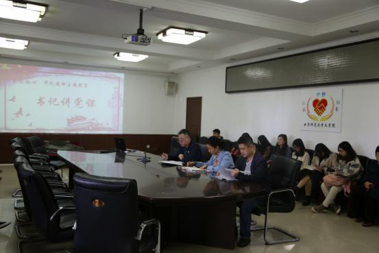 10月30日下午,bet365 党委在院大会议室开展“书记讲党课”活动。党委书记李金雷主讲,bet365 全体党员参加学习。党委副书记曲媛媛主持会议。