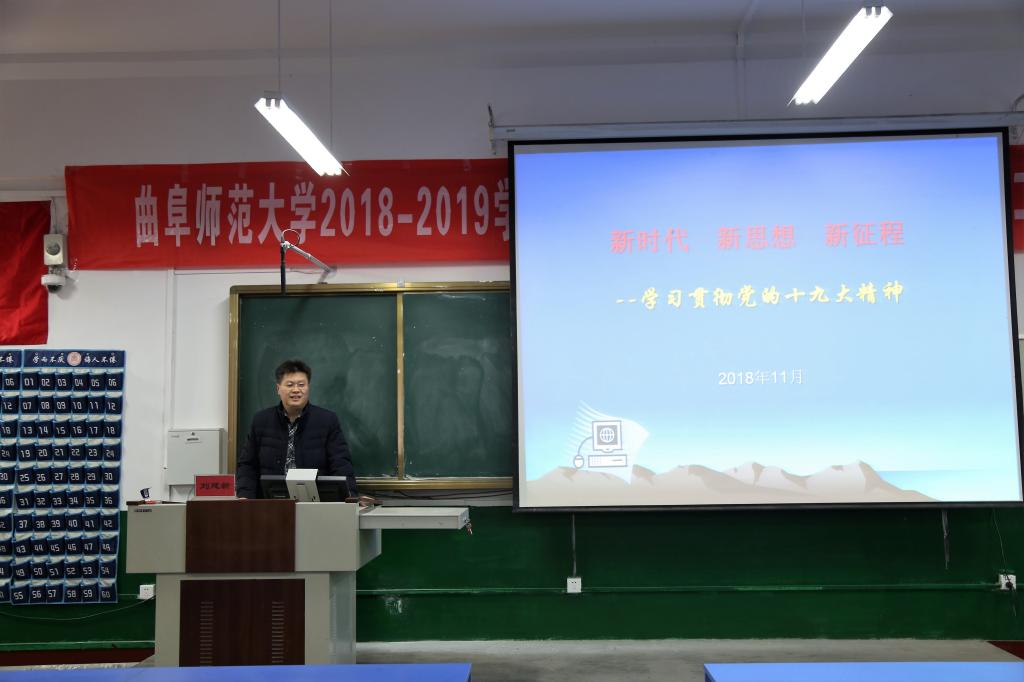 12月15日上午,bet365 “青马工程”第三讲于文史楼315教室举行,数学科学学院党委副书记刘建新以“新时代、新思想、新征程——学习贯彻党的十九大精神”为主题开讲。本次培训由bet365 团委书记刘本成主持,bet365 学生会部分成员参加。