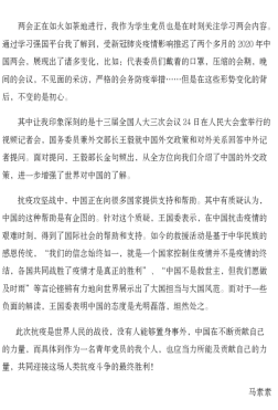 随后,党员们选取自己最为关注的议题抒发个人感想,撰写两会感悟。他们深刻地领悟到:人民有信仰,民族有希望,国家有力量,社会主义的接班人必须要坚定自己的信仰,坚持共产主义,知所从来,知所将往。