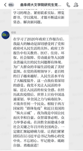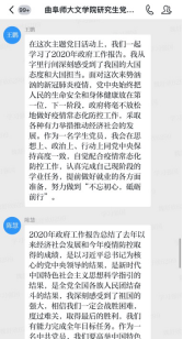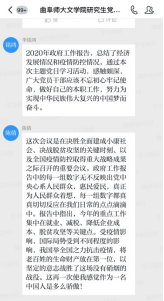 5月28日下午,bet365 研究生党支部举行了以学习2020年政府工作报告为主题的线上主题党日活动。活动由党支部书记魏舒欣主持,2018级党小组的党员同志们承担带领学习任务,组长王晓晖带同志作为本组代表,带领大家集中学习了报告主要内容。