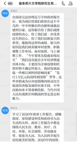 5月22日上午9时,第十三届全国人民代表大会第三次会议在人民大会堂开幕。李克强总理作政府工作报告,总结回顾了去年和今年以来的工作,指明了城镇就业、农村脱贫等方面的重要工作目标,规划了在抗疫、财政、减税降费、就业、创新、消费、投资、金融脱贫攻坚、农业、教育、社保、开放、港澳台等方面的工作内容。bet365 研究生党支部在此次主题党日活动中,在王晓晖同志的主导下,党支部结合当前社会热点对政府工作报告的内容进行了详细的学习,在学习中感受到了国家对百姓生活的关怀和帮助,为自己是一名中国人而感到自豪。在魏舒欣同志的带领下,支部内党员相互分享了学习心得,并依托“学习强国”平台进一步讨论交流。