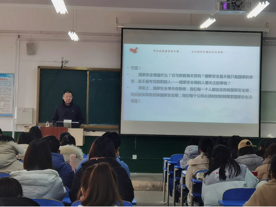 李书记通过生动的时事案例,深入浅出地解释了国家安全观的准则、宗旨与根本,重点强调了新形势下国家面临着传统安全领域、国内国际形势和非传统安全威胁的压力。为了让同学们更好地理解国家安全观的丰富内涵,李书记着重列举了我国在国家安全实践中的成就,通过陆地之争,南海问题等具体事例,展现了中国在国际社会中的大国风度与担当,提升了同学们的民族自豪感与自信心。