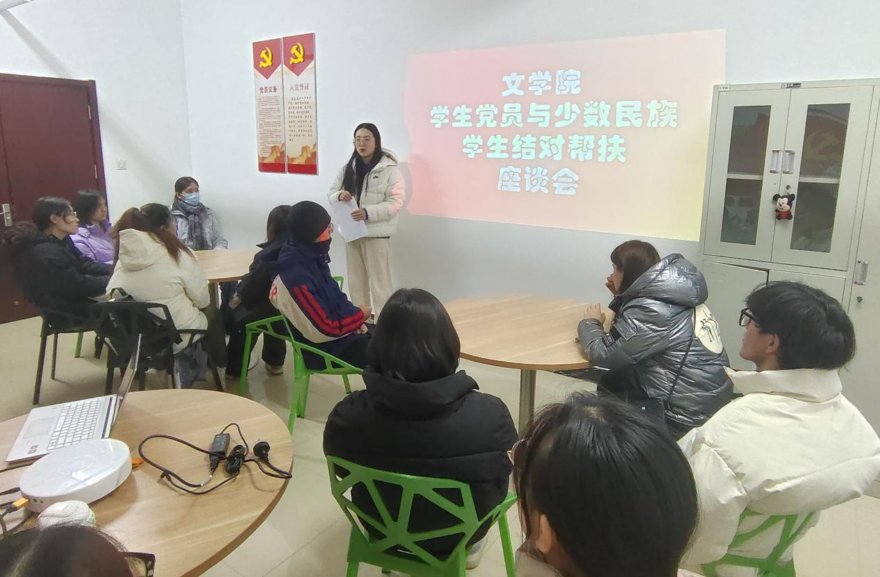会议伊始,肖黎介绍学生党员、少数民族学生情况,学生党员代表与少数民族学生进行精准对接。肖黎宣读了《bet365 学生党员与少数民族学生结对帮扶实施方案》,并从思想引领、学业帮扶、就业指导等方面做了详细讲解。肖黎、刘捷妤为学生党员颁发聘书并合影留念。