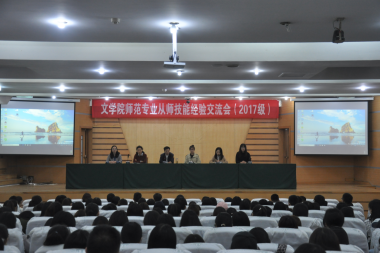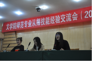 随后,2016级汉语言文学师范专业的三名优秀师范生代表先后进行了从师技能经验的交流与总结。他们结合自身支教经历,用幽默风趣的语言分别从衣、食、住、行等方面分享了支教活动过程中的见闻与感悟,并分享了例如课堂导入、板书设计等具体的教学方法与技巧,解答了各位同学们的疑惑,与会学生纷纷表示获益匪浅。