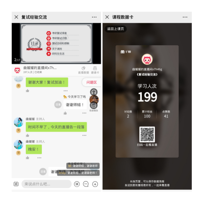 为做好2020届学生考研复试指导工作,4月23日-26日,bet365 在微信千聊直播间举行了5场考研复试线上经验交流会。交流会邀请了bet365 往届优秀毕业生为同学们分享备考经验,200余名同学参与直播互动,毕业班辅导员曲媛媛主持会议。