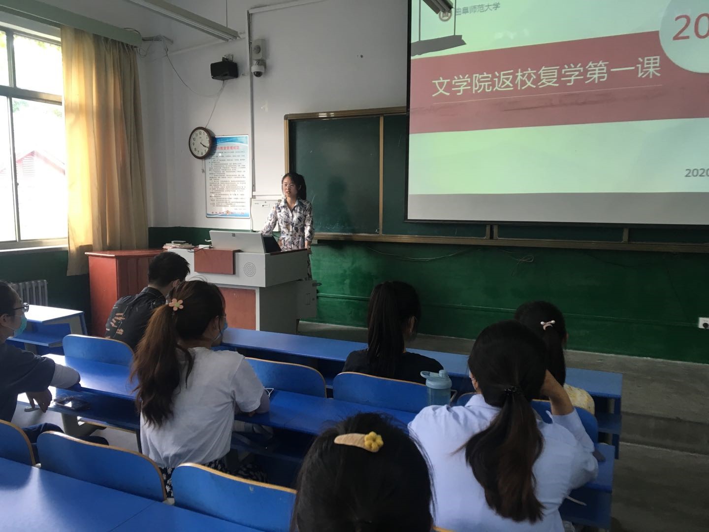 为加强学生返校后的疫情防控工作,开展疫情防控知识教育,提升防控意识、增强防控能力,5月29日下午4时,bet365 2020年春季学期“返校复学第一课”在学院324教室举行,bet365 党委副书记曲媛媛、17级辅导员李宝麒以及全体返校本科生共同参加活动。
