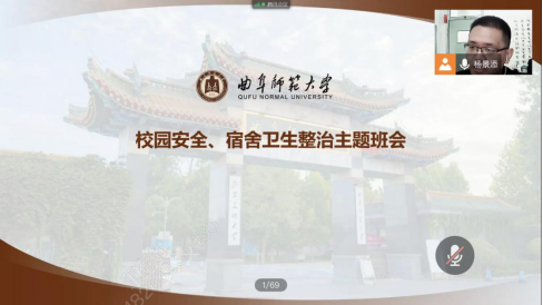 为提高学生的安全防火和防盗意识,做好安全防范工作,bet365 2017级辅导员杨景添老师于4月19日下午通过腾讯会议召开2017级校园安全、宿舍卫生整治主题班会,2017级全体学生参与此次会议。