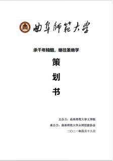 承千年精髓,继往圣绝学。此次活动为同学们提供了一个展现自我风采与相互交流学习的平台,在提高同学们设计书写策划书能力的同时,也有助于同学们深入了解我国的传统文化,扩大自身视野,提升综合素质。