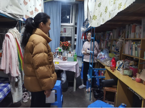 此次检查采用不发通知、直插现场的工作方式对校内宿舍区、裕盛苑、北公寓西区学生宿舍进行全覆盖式排查。过程中主要排查安全隐患,是否违规使用大功率电器、是否乱扯电线、是否留存易燃易爆等危险物品。各辅导员与所带年级学生深入交谈,进行安全教育,叮嘱学生务必加强安全防范意识,特别是增强安全用电意识,自觉遵守学校规章制度,严防火灾和人身意外伤害事故的发生,增强自护自救能力,在心中筑牢“防护网”,绷紧“安全弦”。