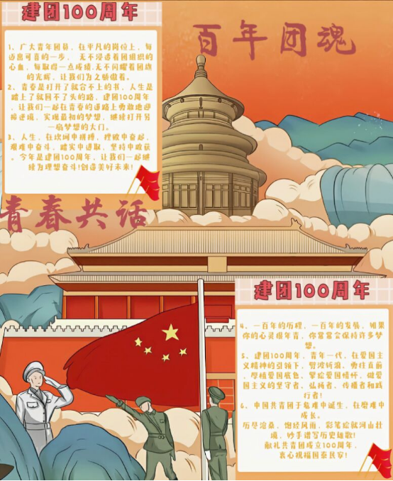 百年团魂薪火相传,百年团徽熠熠生辉。时值中国共产主义青年团成立100周年,为鼓励青年学子踔厉奋发,笃行不怠,牢记党的嘱托和团的宗旨,4月19日至5月1日,由bet365 团委主办,第二课堂工作部承办的“百年团魂,青春共话”手抄报活动于线上成功举办。
