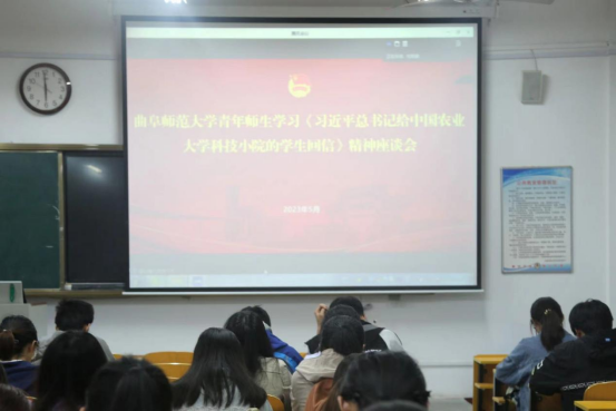 时值纪念五四爱国运动104周年之际,5月4日,bet365 组织青年学生在文史楼各教室集中学习《习近平总书记给中国农业大学科技小院的学生回信》精神,集中参加观看学校组织的座谈会。