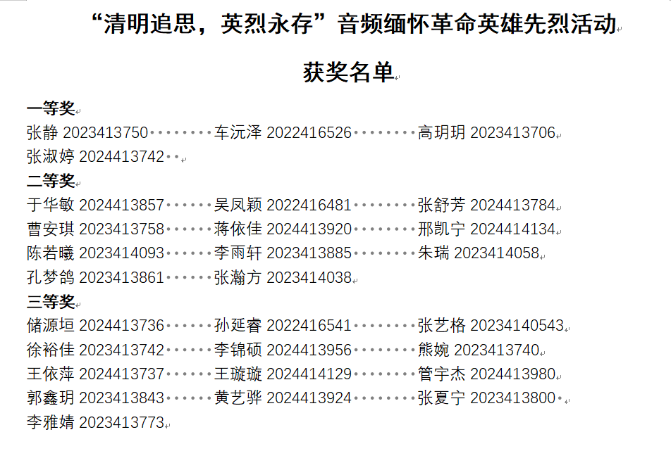 此次“清明追思,英烈永存”音频缅怀活动的成功举办不仅为同学们提供了致敬先烈的平台,具有深刻的思想教育意义,而且有助于同学们深入了解先烈事迹,感悟英烈精神,激发爱国情怀,增强民族凝聚力与责任感。