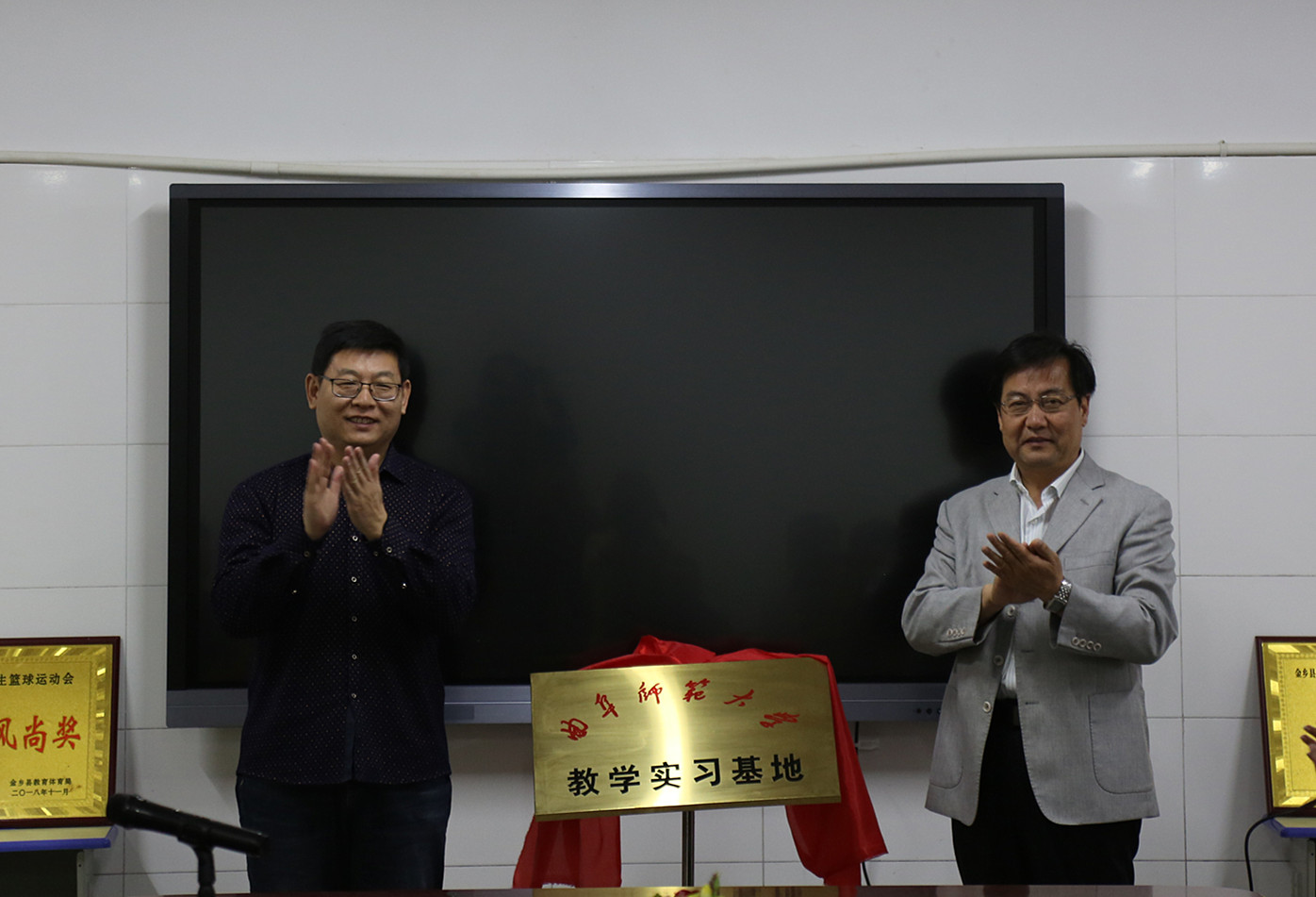 在金乡县,bet365 党委副书记王作茂、数学科学学院党委副书记刘建新与金乡县教体局局长李英渠、金乡县实验中学校长周明坤等共同出席了“bet365 教学实习基地”挂牌仪式。仪式上,刘建新代表学校致辞,王作茂与周明坤共同签署了实习协议,并为”教育实习基地“揭牌。