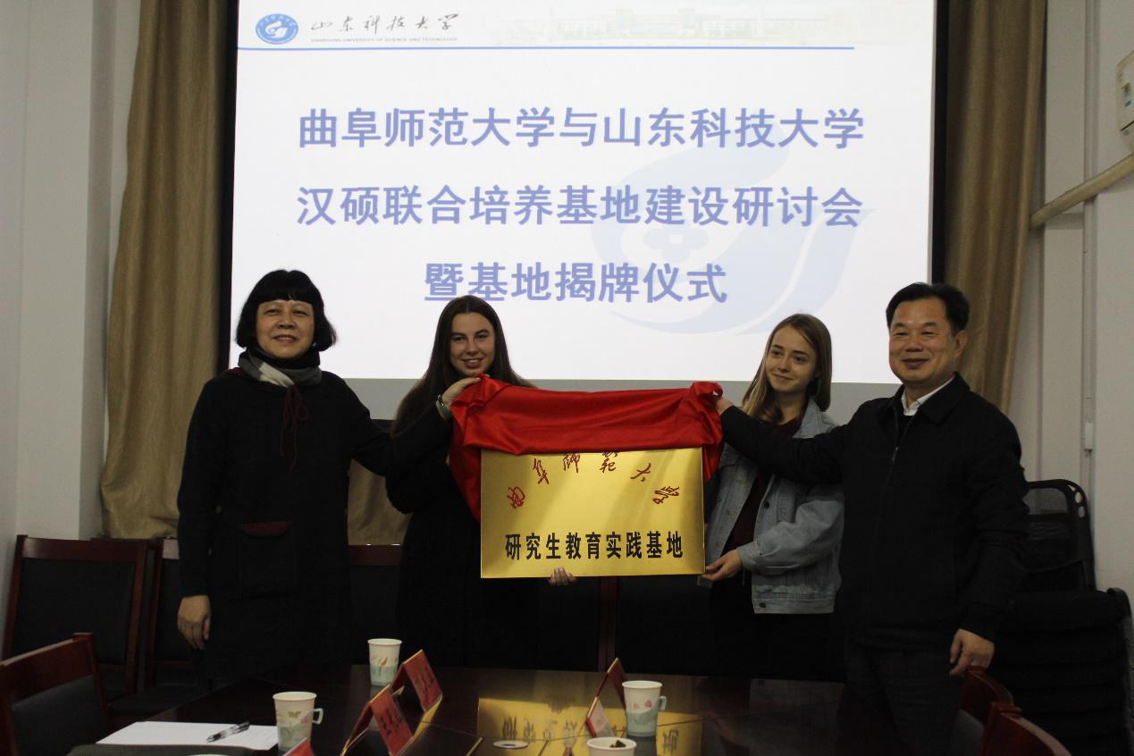 2018年11月2日,bet365 —山东科技大学汉硕联合培养基地建设研讨会暨基地揭牌仪式在山东科技大学隆重举行。出席会议的专家有:我校研究生处处长李兆祥、bet365 院长夏静、bet365 院长助理霍俊国、bet365 汉语国际教育专业负责人秦海燕、山东科技大学研究生处处长曹茂永、国际交流处副处长范志坚等,我校及山东科技大学国际交流处部分教师代表、学生代表参加了活动。