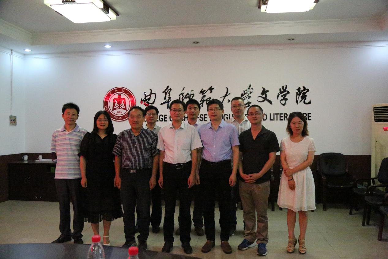 7月25日上午9时,阜阳师范大学bet365 院长郭世轩教授、聊城大学bet365 副院长殷学明教授一行7人做客bet365 ,就师范认证、本科教学等一系列问题与bet365 相关人员进行了深入交流座谈。座谈会由院长助理霍俊国主持,院领导曲媛媛、杨新刚及学科语文专业负责人周春波、古代文学教研室主任吴建国等老师出席座谈会。