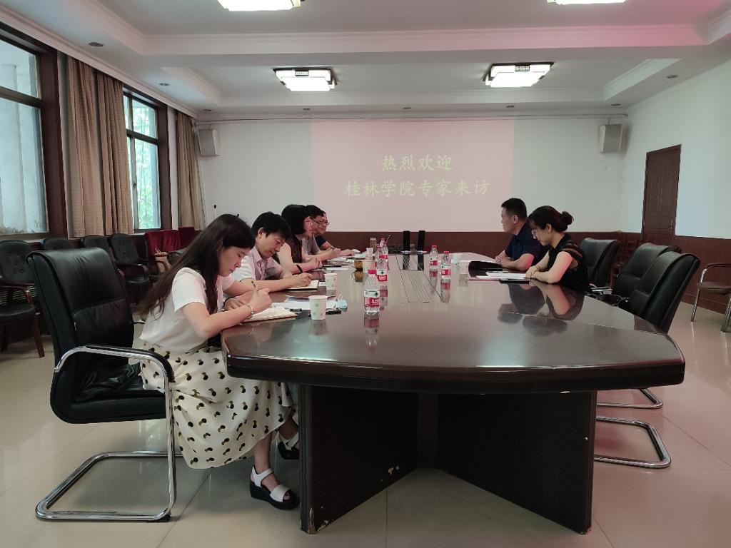 2021年7月13日上午,桂林学院教学科研处处长、校语委委员杨杰夫教授,桂林学院校语委常务副主任、语言文学学院副院长陈锴老师一行到我校省语言文字推广基地交流。bet365 语言文字推广基地主任夏静教授,常务副主任李建校教授,副主任杨新刚教授、霍俊国副教授和基地秘书刘嵘博士与来宾进行了交流座谈,座谈会由李建校教授主持。