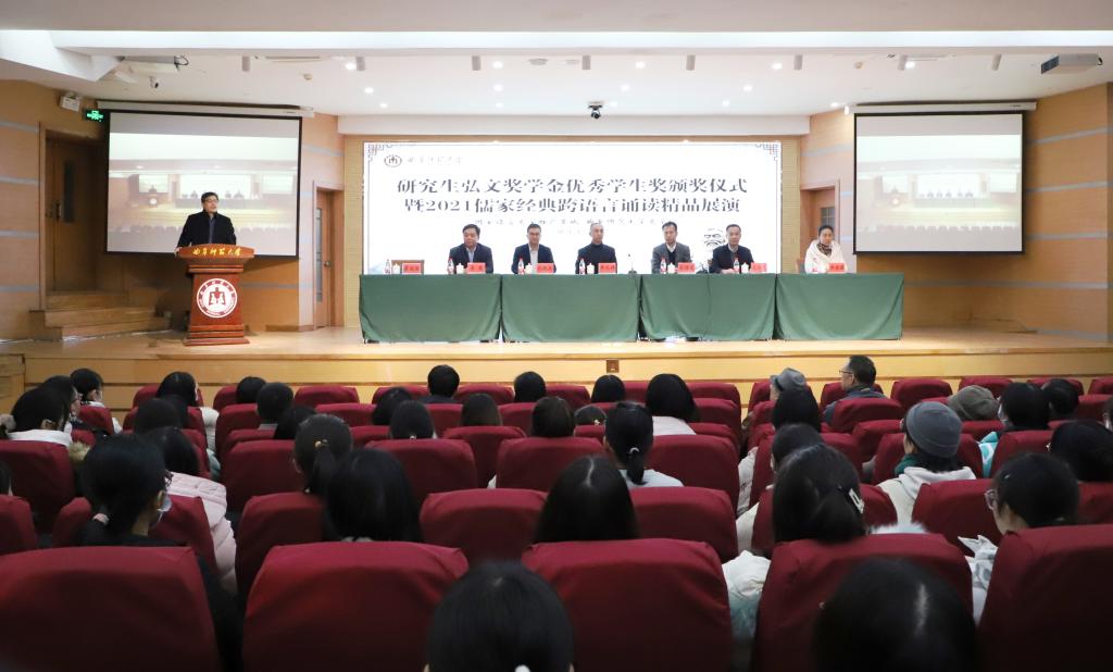 2021年12月22日下午,bet365 在孔子会堂成功举办了首届研究生“弘文奖学金”颁奖仪式。学校党委常委、副校长李兆祥、研究生处处长杜曙光、学校团委书记孔轶众、bet365 党委书记左兴才、国内合作处副处长晏逾、bet365 党委副书记曲媛媛和bet365 各年级本科生参加了颁奖仪式。仪式由霍俊国老师主持。