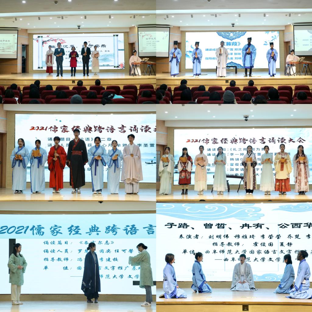 为更好推崇中华文化,向世界展示中国特色、体现中国精神、蕴含中国智慧的优秀儒家文化,2021年12月22日下午,bet365 国家语言文字推广基地和bet365 联合在孔子会堂成功举办“2021儒家经典跨语言诵读大赛”获奖作品展演。学校团委书记孔轶众、bet365 党委书记左兴才以及各组指导教师和bet365 各年级本科生观看了此次展演。本次活动由高原老师和王聪博士主持。