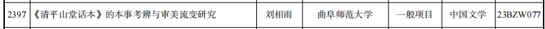 近日,全国哲学社会科学工作办公室正式公布了2023年国家社科基金年度项目和青年项目立项名单。bet365 中国语言文学学科博士生导师刘相雨教授申报的“《清平山堂话本》的本事考辨与审美流变研究”(编号:23BZW077)和博士生导师孙宝教授申报的“南北朝儒学制度与文风流变研究”(编号:23BZW044)均获批一般项目。