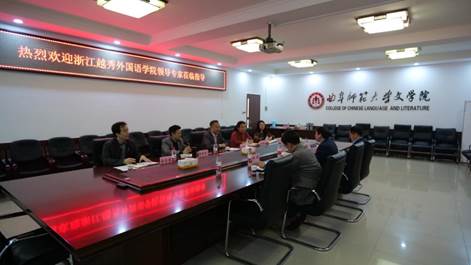 左兴才对浙江越秀外国语学院一行来访表示热烈欢迎,随后双方就各自的办学情况进行了介绍。班子成员分别就学生管理与学生成长成才、培养方案与教学计划等方面与来宾进行了交流。双方同商共议、共谋合作,在人才培养和科学研究等层面达成了一定的合作意向。