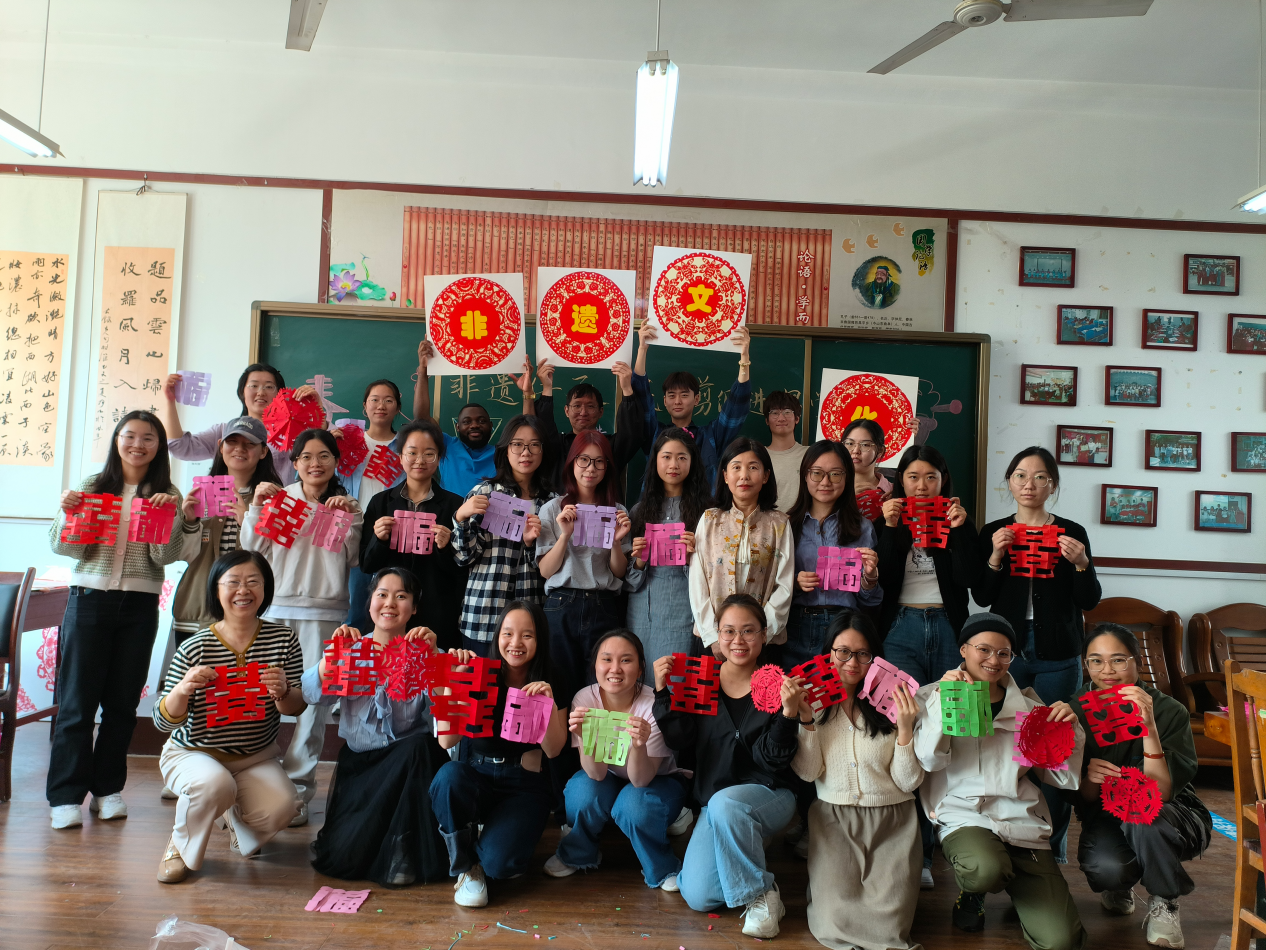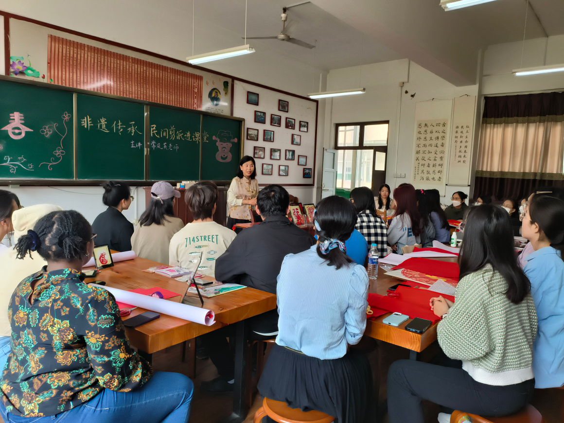 为弘扬中华优秀传统文化,增进中外文明互鉴,丰富课堂教学,4月12日上午,bet365 邀请曲阜市剪纸类非物质文化遗产代表性传承人、时庄街道中学常凤英老师举行“非遗传承,民间剪纸进课堂”的教学活动,bet365 秦海燕老师、姚瑞老师和2023级国际中文教育专业研究生参加。