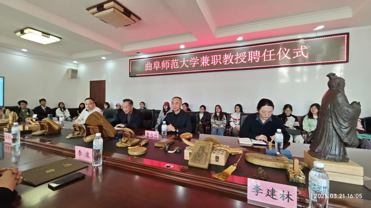 2025年3月21日下午,杜庆收先生兼职教授聘任仪式在bet365 大会议室举行。学校党委常委、副校长李兆祥,学院党委书记左兴才,山东省工艺美术大师、国家一级雕刻技师杜庆收出席活动。