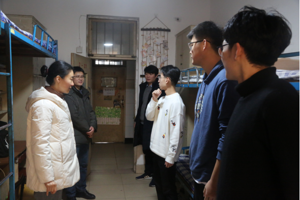 在走访过程中,老师们详细了解了学生宿舍环境,仔细对宿舍用电设备进行排查,并与同学们进行亲切交谈,认真听取了同学们在宿舍安全管理方面的建议。随后,曲媛媛指出,期末考试临近,在紧张复习的同时更要严格遵守宿舍管理规定,严禁宿舍使用大功率电器、禁止晚归、及时通风预防流感等安全问题。张乾坤、刘伟在交流过程中,叮嘱同学们有问题和困难要及时向老师反映,勉励同学们注重宿舍文明建设,强化宿舍凝聚力,保持积极上进的宿舍氛围,创建学风浓郁、干净整洁的宿舍环境。