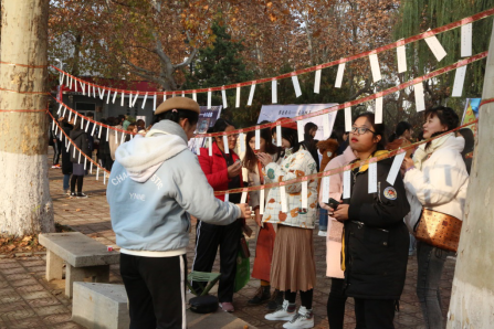 为激发同学们对传承传统文化的热情,进一步坚定文化自信,12月1日上午,由bet365 团委主办、学生会秘书处承办的"觅古探今——bet365 第一届游园会"活动于文史楼前举行。活动吸引了来自各个年级不同专业的一百五十余名学生积极参与。